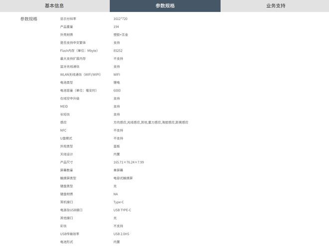 该机搭载Armv8-A处理器(具体型号暂未公布)。尺寸为165.71×76.24×7.99mm、重约194g,配备USBType-C接口,其屏幕分辨率为1612*720,内置6000mAh电池。
