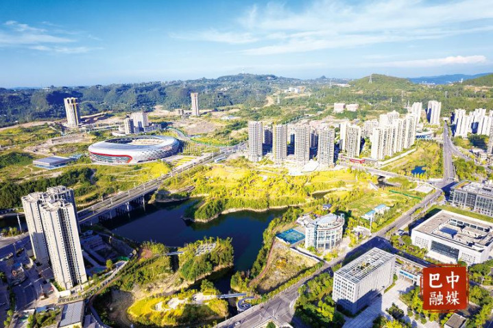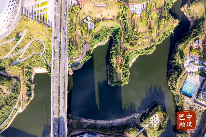 记者看到,步道上是跑步和散步的居民,溪边平台上,这边有练太极的银发老者,那边的广场舞队伍正随音乐起舞,波光粼粼的水面倒映着周边拔地而起的现代化住宅楼。作为巴中经开区核心区的“生态明珠”,这里让“推窗见绿,出门入园”从梦想照进现实。