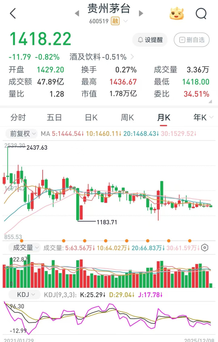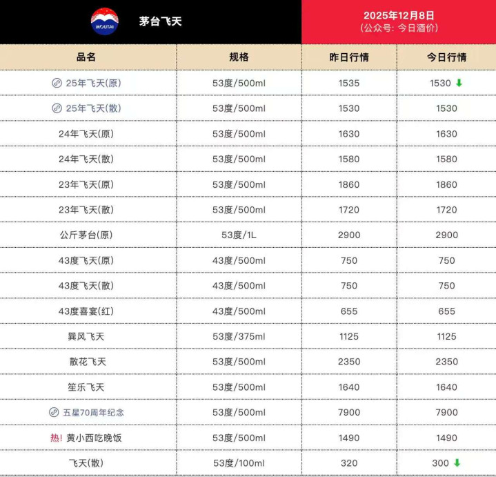 最新的市场零售情况,53度飞天茅台的市场终端零售价,也是与茅台集团指导市场价,仅差一步之遥。现在2025年53度飞天茅台原箱价与散瓶价格都已经回落到了每瓶1530元,而茅台集团的指导价为每瓶1499元。