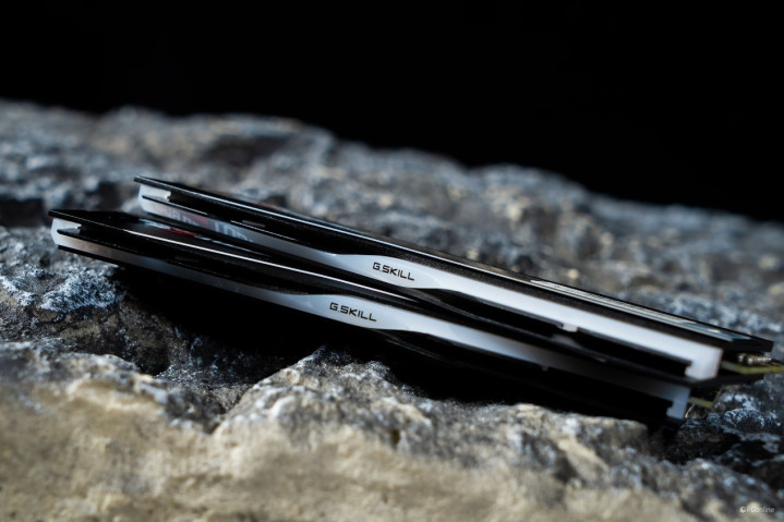 另外,仔细看还可以看到,散热马甲采用了导热效率相当出色的铝合金材质打造而成,其表面采用了金属拉丝与磨砂喷漆两种不同的处理手法,高光、哑光的结合让内存呈现出了多层次的质感效果,也足见芝奇的硬件设计功底。