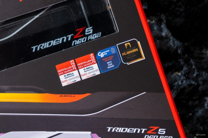 下面让我们一起开箱一下这款内存,芝奇Trident Z5 Neo RGB 焰锋戟 DDR5的外包装采用了与过往一致的纯黑色外观包装设计,搭配内存本体的渲染图,顶部灯效则凸显了内存的 RGB 效果。