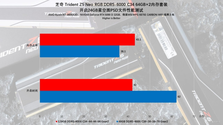 性能释放层面,实测芝奇Trident Z5 Neo RGB DDR5内存同样非常给力,开启EXPO之后的性能表现达到预期,展现了芝奇高频内存一贯的优秀品质。内存高频工作所带来的整体性能提升尤为显著,确实能在使用中为用户带来出色的应用体验。同时,128GB的超大容量,为多任务处理和大型素材编辑提供了充足的空间支持,即使面对大尺寸、超高精度的素材,也能保持稳定的运行状态,显著提高工作效率。